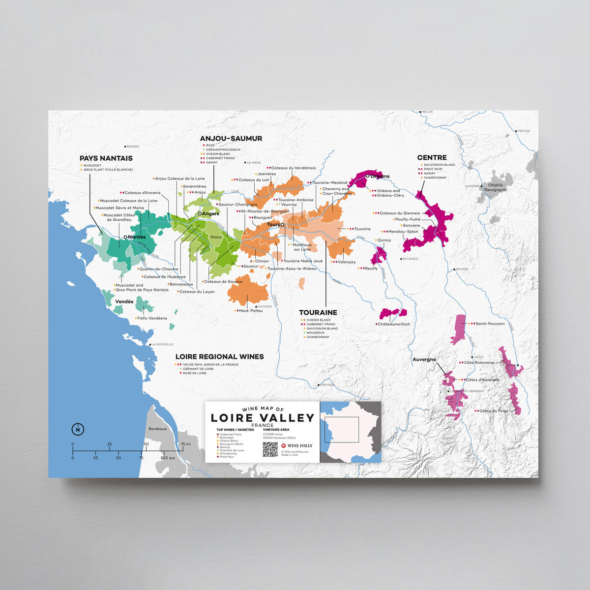 Loire Wine Map Loire Valley Map of Vineyards Wine Regions: This region is France’s heartland, boasting an array of vineyards that produce some of the country’s most esteemed wines. The valley, adorned by the majestic Loire River, is dotted with stunning . The Loire is best known for crisp dry still & sparkling white wines based on the Chenin Blanc from Vouvray, which are light, fresh and relatively low in alcohol. Reds come mainly from Gamay & Cabernet .